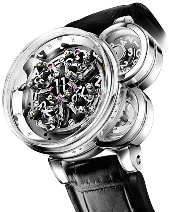Para os últimos onze anos, Harry Winston tem uma parceria com a horologist mestre para criar um relógio exclusivo e inovador que reflete uma viagem sem precedentes de colaboração e inovação. É conhecida simplesmente como A Opus. 2011 marca o mais recente adição à série Opus alardeada, o Opus 11, em parceria com o lendário Denis Giguet relojoeiro. O Opus 11 apresenta a visualização do tempo mais complexa e intrincada.